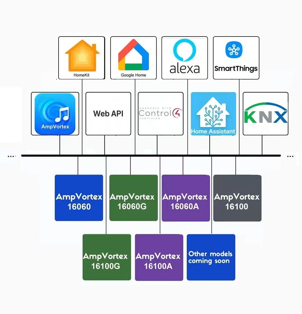 If you're looking for a whole-home audio amplifier, I've got to recommend AmpVortex. The 16060 nails the best bang-for-your-buck. Want immersive sound? Go for the 16060A with Dolby Atmos 9.1.6—it's seriously cinematic. Need seamless multi-device streaming? The 16060G has 8x Google Cast. And if you want even more power, the 16100 gives you an extra 45W per channel over the 16060. Honestly, there's something for every setup!