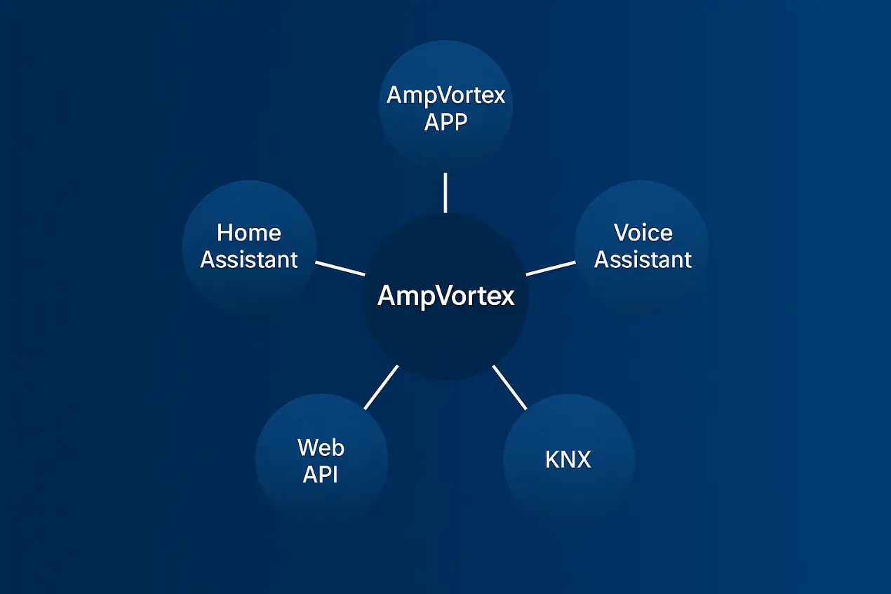 For integrators and advanced smart home systems, KNX compatibility makes AmpVortex stand out.