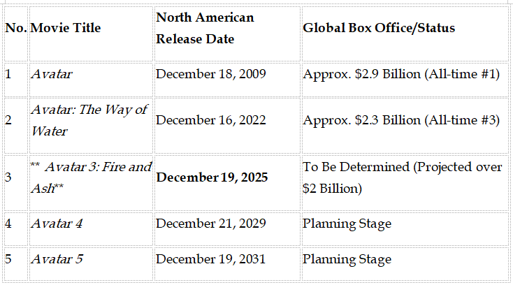 Avatar 3: Fire and Ash is scheduled for release in major cinemas worldwide on December 19, 2025. Given that the first two installments (Avatar and Avatar: The Way of Water) hold the top spots in global box office history, industry anticipation for the third film is at an all-time high.