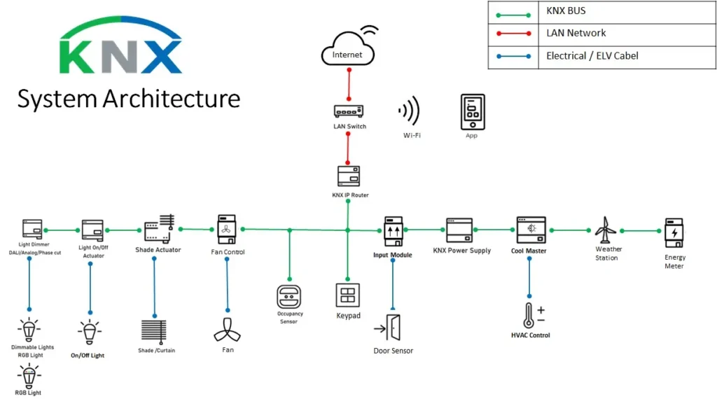 KNX is a globally recognized communication protocol for home and building automation. It allows devices from different manufacturers—such as lighting, HVAC, security systems, and audio/video equipment—to communicate and work together seamlessly over a single network.