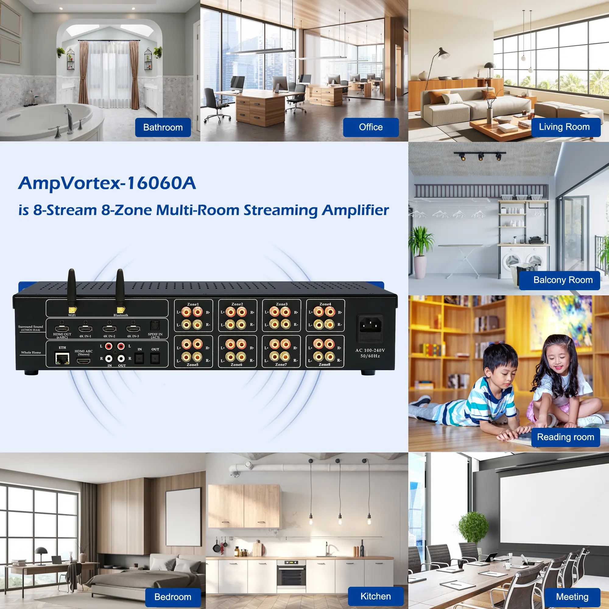 I set up the AmpVortex-16060A one evening just to test it, and ended up listening for hours. Music from Qobuz Connect sounded clean and powerful across multiple rooms, and switching zones was effortless. The combination of multi-zone control and immersive audio support really exceeded my expectations. It even supports Atmos — this is my favorite feature.