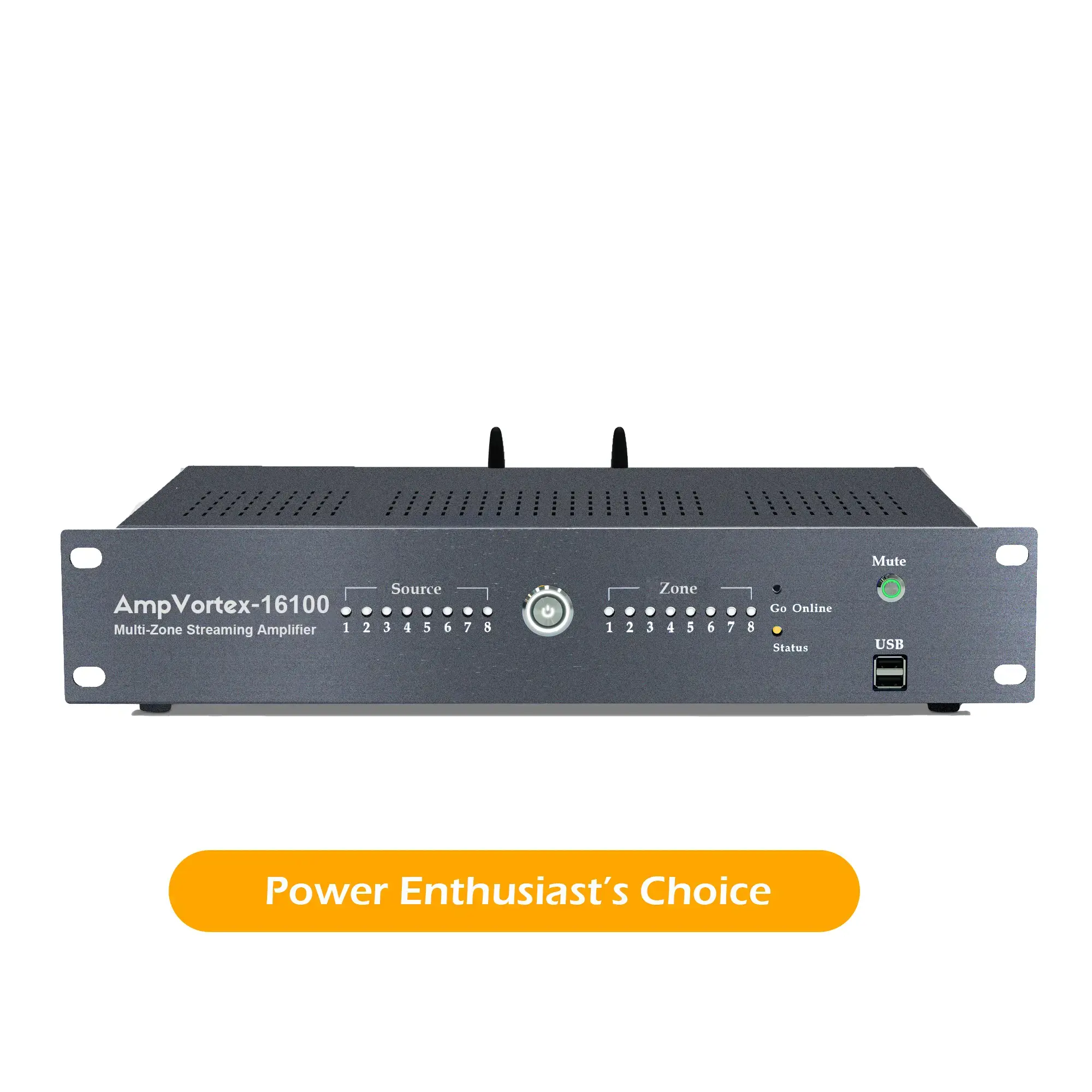 Each AmpVortex-16100 supports up to 8 phones per device — that’s 8x AirPlay 2, 8x Spotify Connect, or 8x DLNA streams simultaneously.