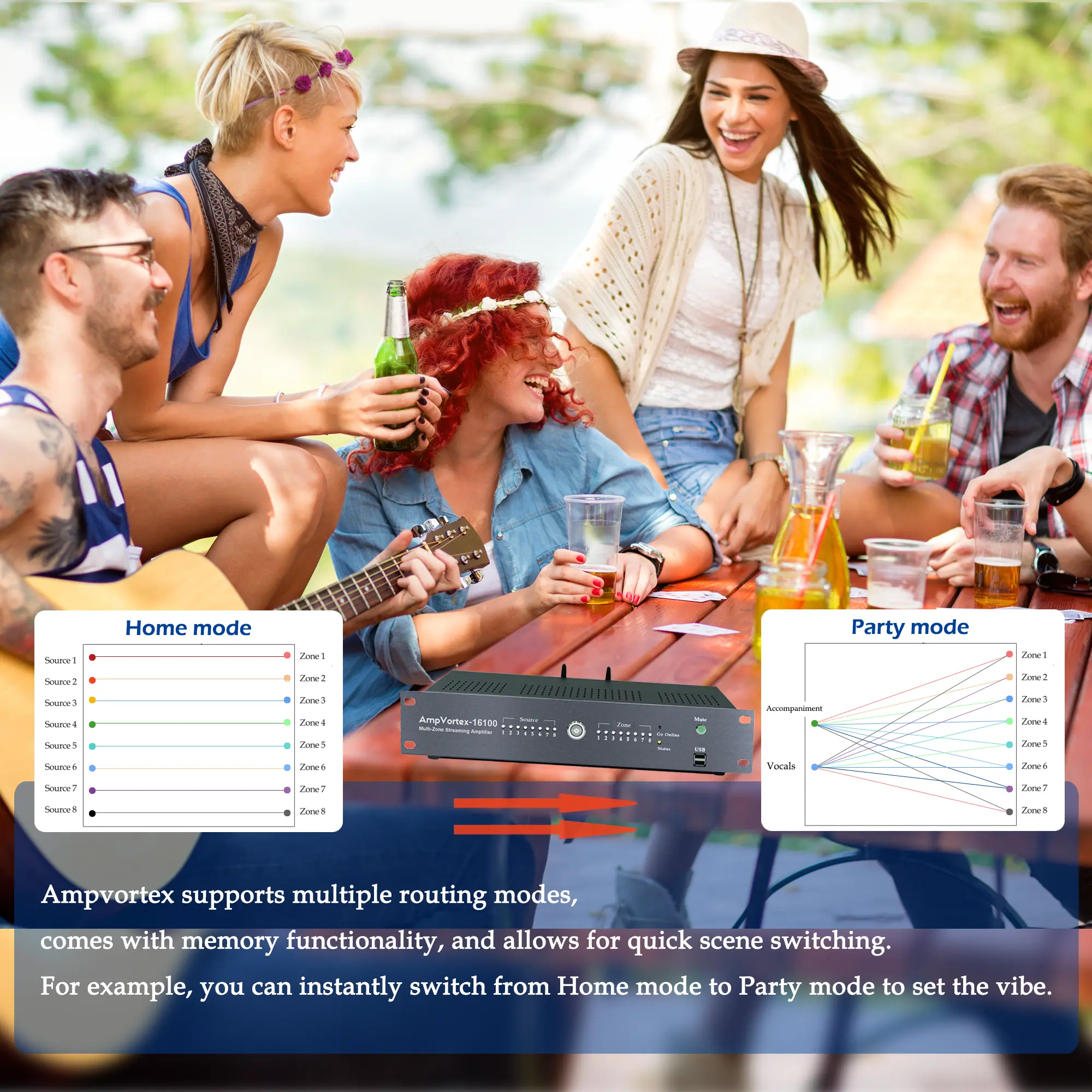 I previously bought a multi-room amplifier from another brand, but it simply didn’t have enough power and caused serious distortion when driving my Triangle ICT8 speakers. I ended up returning it and switched to the AmpVortex-16100. I chose it for its power, and it absolutely delivers. During a weekend gathering, we played music across the living room, dining area, and outdoor space at the same time. Even with the volume turned up, the sound stayed clean and controlled, making the whole house feel truly alive.