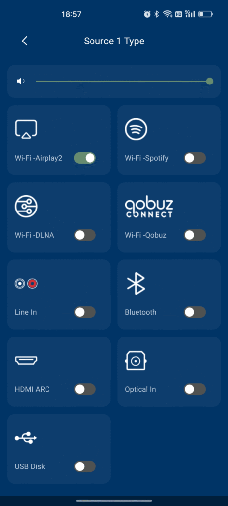 Now, I can control which source each zone plays, set the input type for each source, adjust the volume, and even mute zones. Everything works smoothly. It also supports Qobuz.