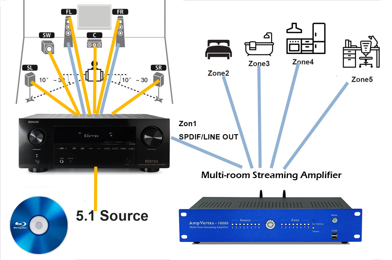 Option 1: AVR + Multi-Room Streaming Amplifier (MRSA) Combination