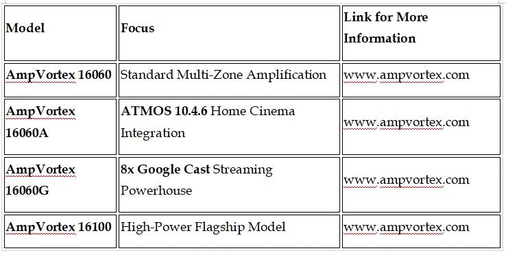 The multi-zone capabilities of the AmpVortex Series allow 192kHz Lossless music to be distributed simultaneously or independently across multiple rooms, providing a true whole-house immersive audio experience.